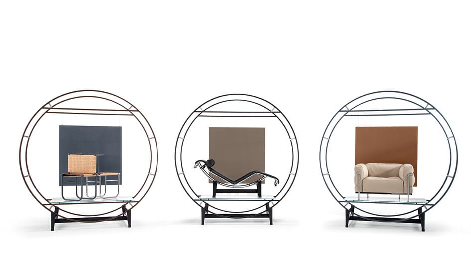 A contemporary take of iconic chairs designed by Le Corbusier, showcased by Cassina at Milan design week.