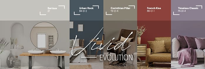 With Vivid Evolution, tranquillity is the goal. This bold and intentional range of hues tells you to finally make the changes you’ve been putting off, inspiring you to finally take action without fear or hesitation.