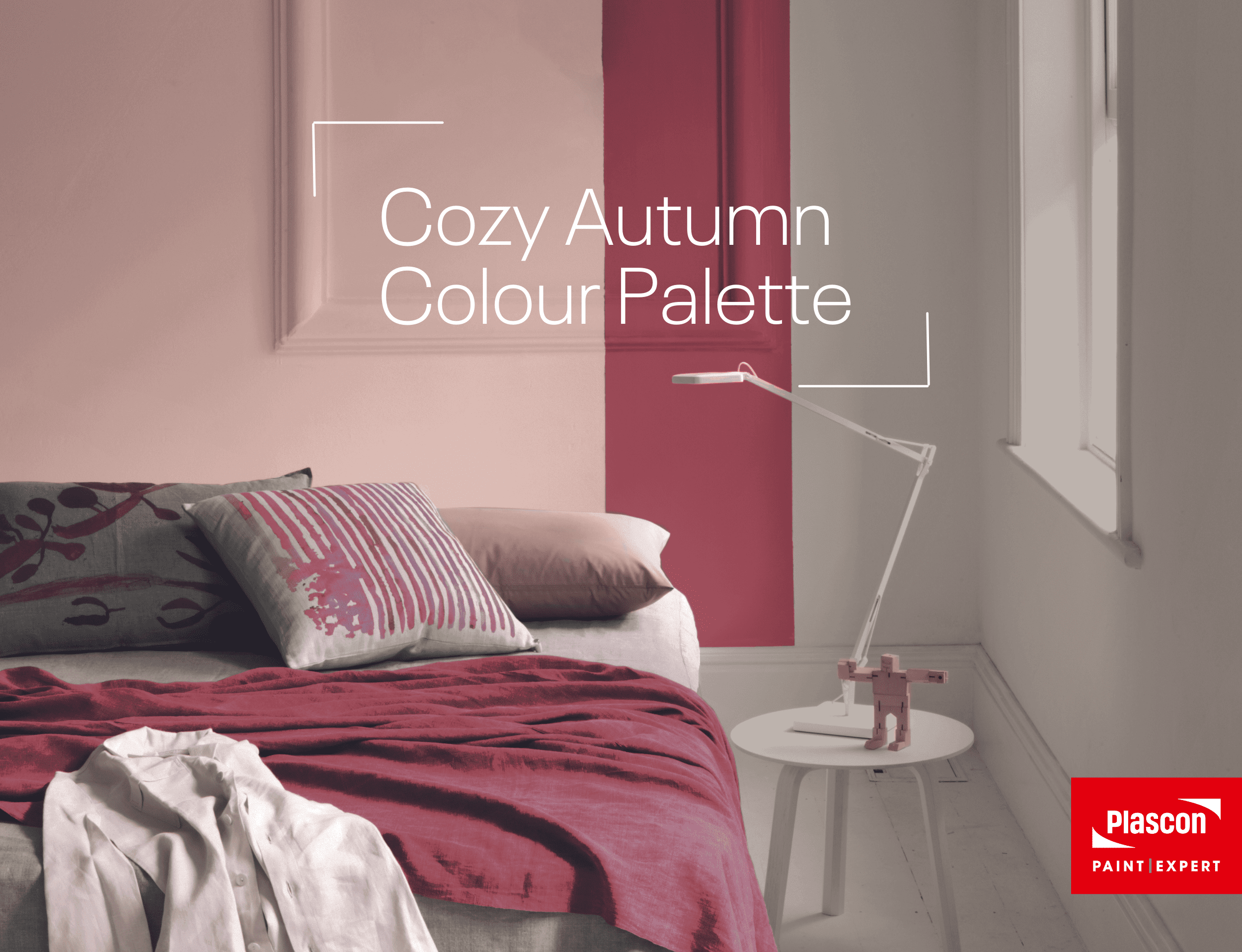 Plascon’s rich reds and shell-tinted pinks bring warmth and a touch of spice to your living spaces this autumn. Hot Terracotta (R5-C1-1) delivers a powerful enveloping accent, with a tonal partner, the softly shaded pink of Walnut Spice (02-C2-2) bringing a soft and deliciously cosy note. The neutral backdrop of Ravine (62) ties the theme together perfectly.