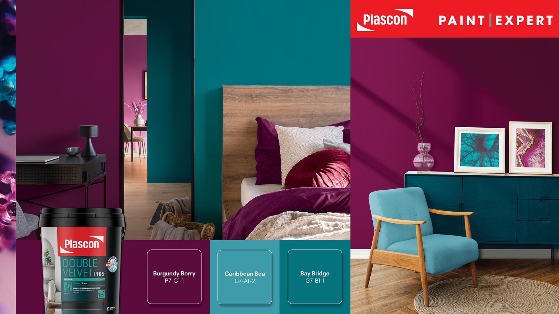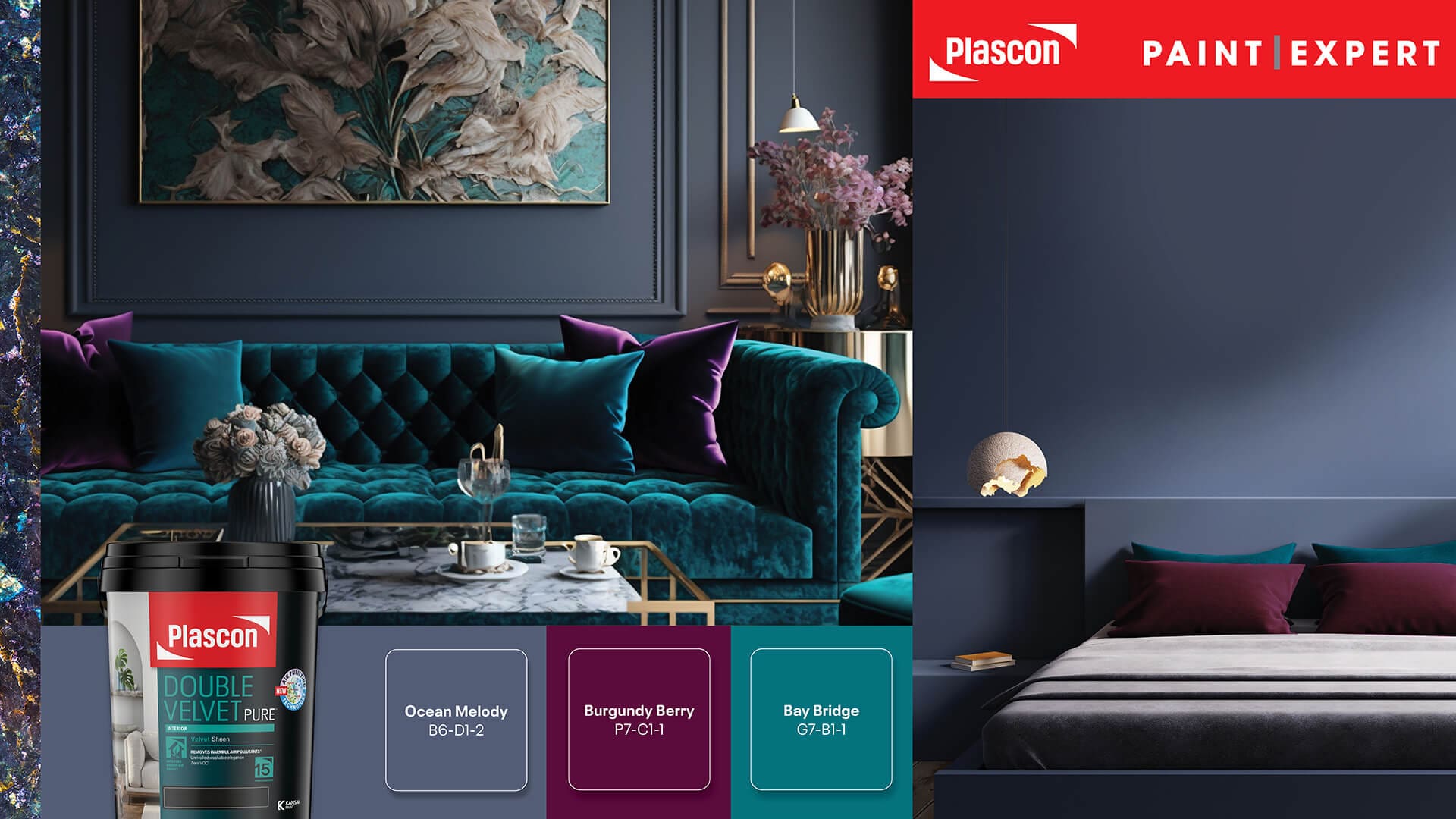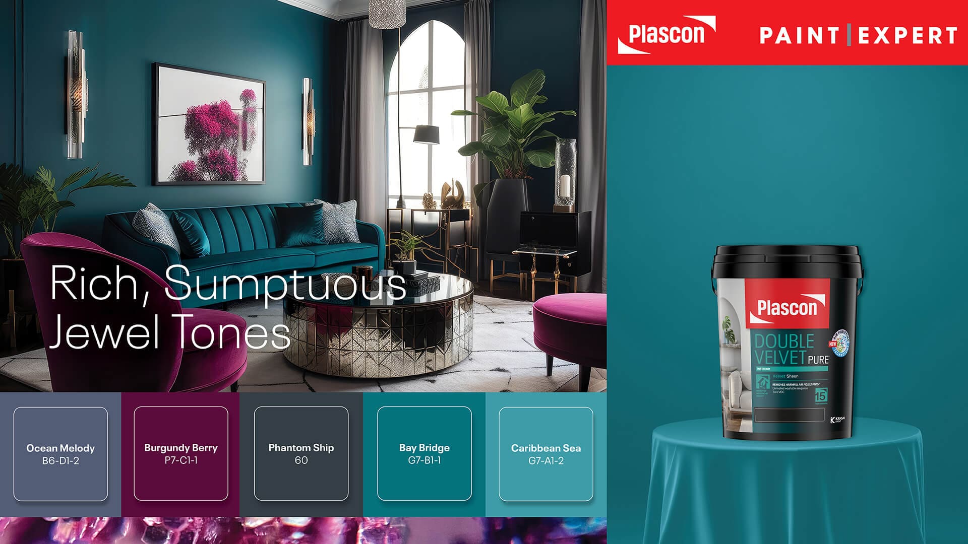 When it comes to decorating, the use of vibrant colours can transform a space into a captivating and luxurious haven. Jewel tones, with their rich and opulent hues, are an excellent choice for adding depth, drama, and sophistication to any room. In this article, we will explore the enchanting world of jewel tones and delve into the art of decorating with Plascon’s stunning shades, including Burgundy Berry (P7-C1-1), Bay Bridge (G7-B1-1), Caribbean Sea (G7-A1-2), and Ocean Jewel (G7-A1-3). Get ready to immerse yourself in a world of vibrant beauty!