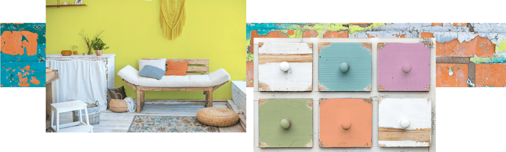 Play with the use of colour blocking and geometry to create a modern look in your space using the City to Surf palette which is great for use in many DIY projects.