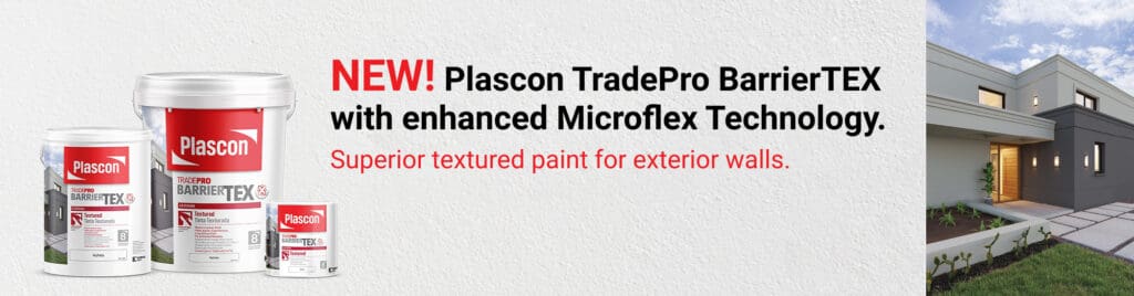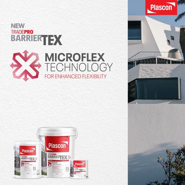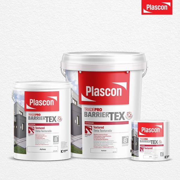 The solution? The newly released Plascon TradePro BarrierTEX is a textured paint for exterior walls that exceeds in durability and appearance with market leading MicroFlex Technology.