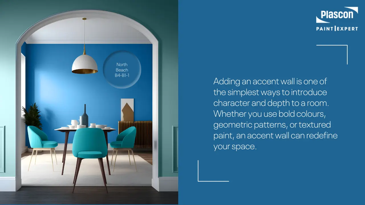 Adding an accent wall is one of the simplest ways to introduce character and depth to a room. Whether you use bold colours, geometric patterns, or textured paint, an accent wall can redefine your space.