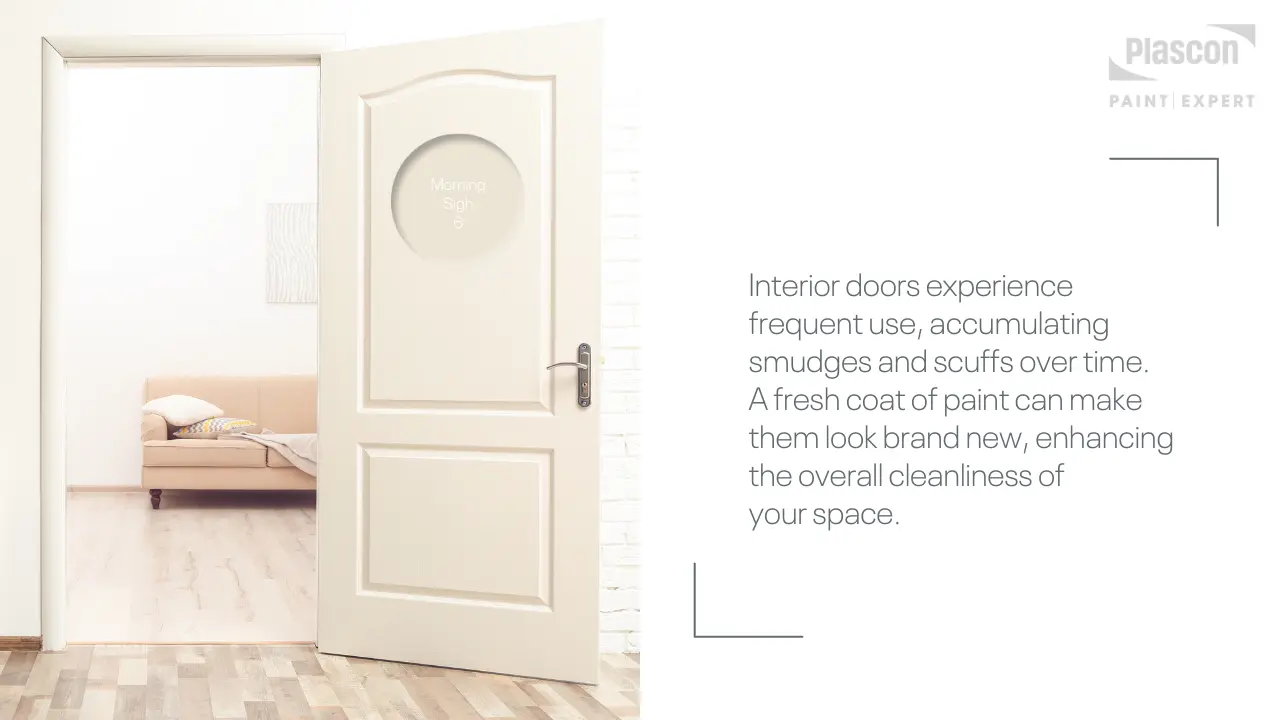 Interior doors experience frequent use, accumulating smudges and scuffs over time. A fresh coat of paint can make them look brand new, enhancing the overall cleanliness of your space.