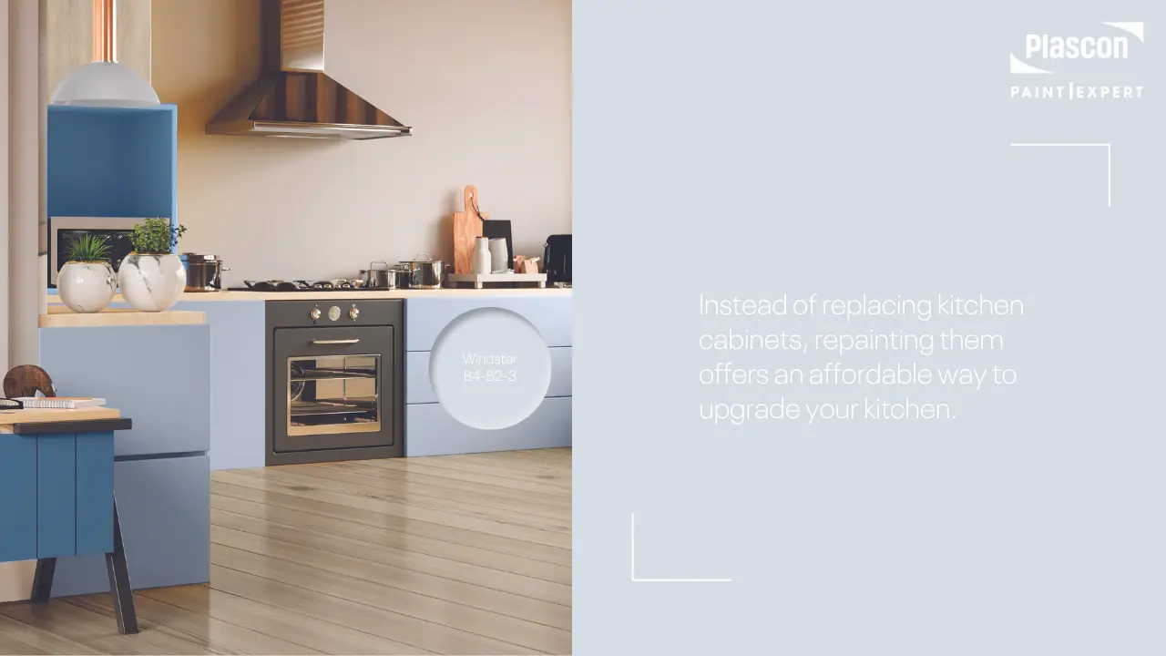 - We recommend Plascon Velvaglo non-drip Water-based Enamel for the best finish on your kitchen cabinets.
