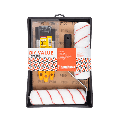 225mm All-purpose roller, 225mm All-purpose refill, (25, 38, 50mm) Viva brush set, Sanding sheet & Paint tray.