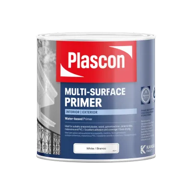 Plascon Multi-surface Primer is a water-based multi-surface primer for use on a variety of specified surfaces. For interior and exterior use. Suitably prepared plaster, wood, galvanised iron and PVC. For use over appropriately cleaned specified surfaces to provide good adhesion for paint systems.