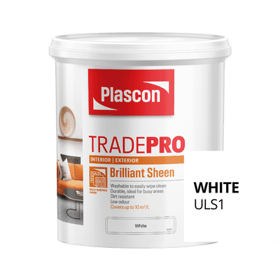 Plascon TradePro Brilliant Sheen is a superior quality washable and durable acrylic paint for both interior and exterior surfaces.
