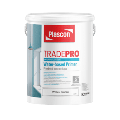 Plascon TradePro Water-Based Primer is a water-based primer for masonry surfaces. Suitable for priming new interior and exterior cement plaster, concrete, porous brickwork and various types of building boards.