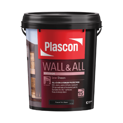 Plascon Wall & All 20L is a high-quality, exceptionally durable, and washable pure acrylic emulsion sheen paint. It is ideal for application on properly primed surfaces such as new and previously painted plaster, concrete, wood, various building boards, as well as suitably primed mild steel, galvanized steel, and gypsum plaster. This versatile paint is designed to be used exterior walls.