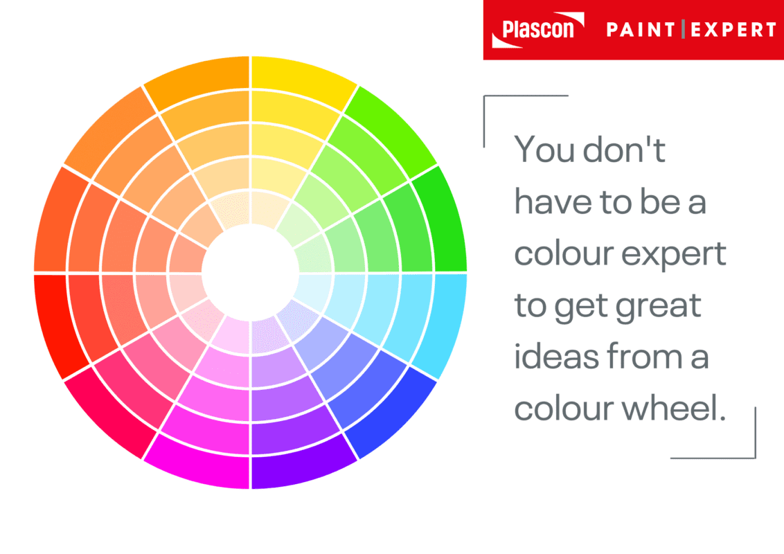 You don’t have to be a colour expert to get great ideas from a colour wheel. Use a colour wheel to see how colours might go together and learn the basics of colour theory by turning the wheel. Even though you probably won’t paint your house in the exact colours on the wheel, you can choose shades of those colours at your nearest Plascon Paint Expert store.